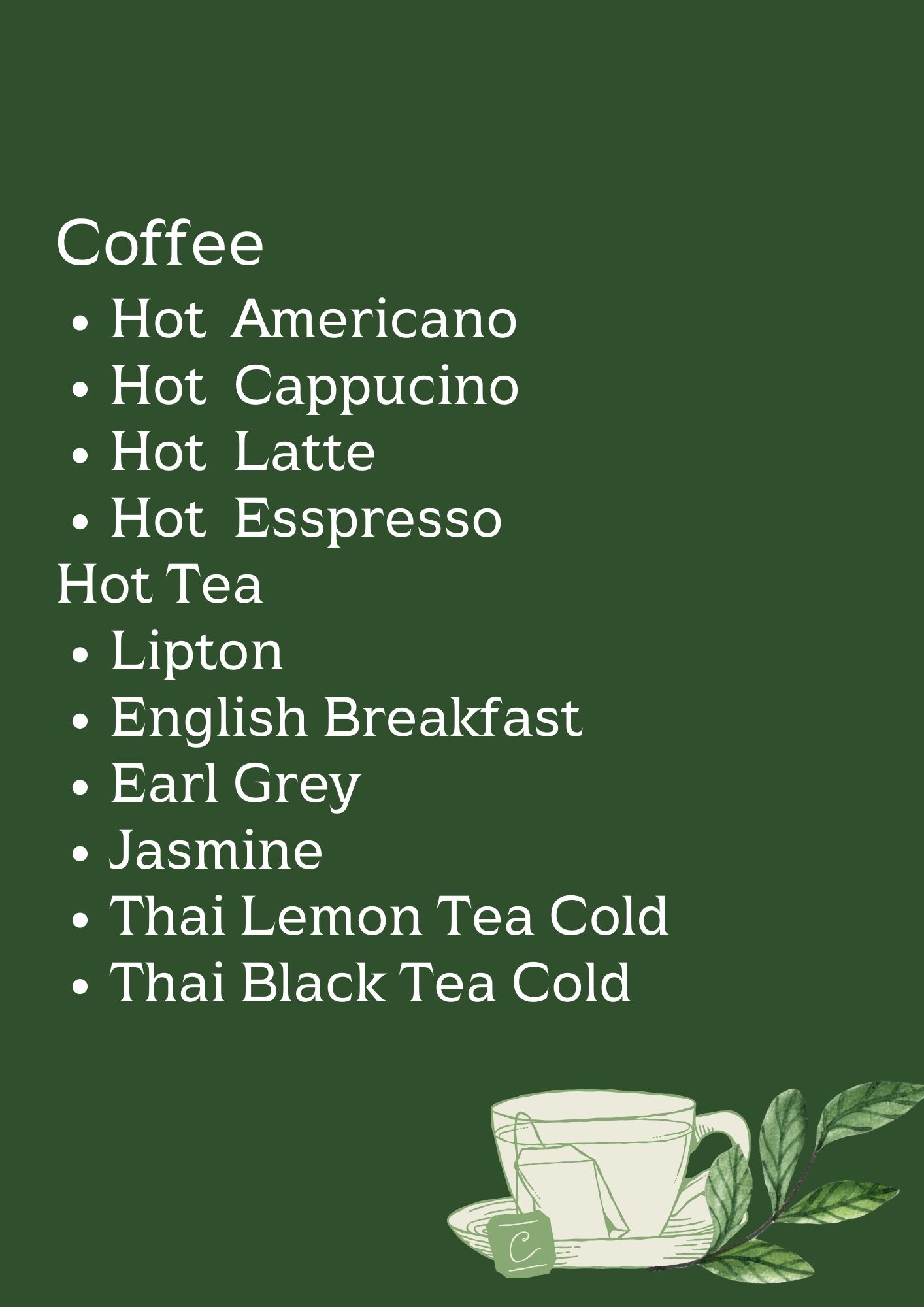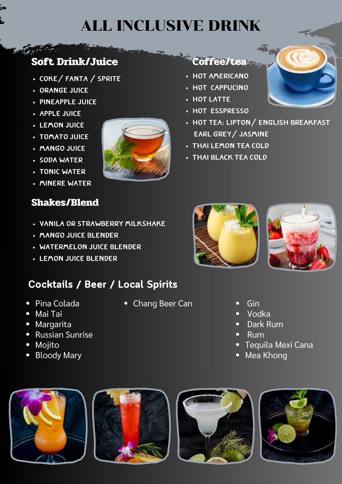 - مشروبات غير محدودة طوال اليوم. اطلب من قائمة المشروبات الخاصة بنا!